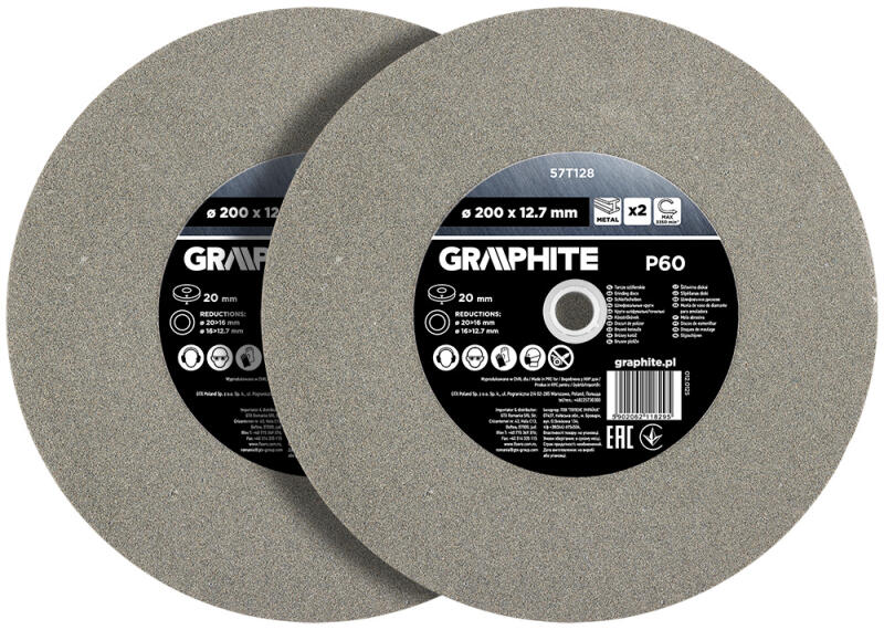 GRAPHITE Köszörűkorong, 200x20/16/12.7x20mm, P60, 2db (57T128) - szerszamparadicsom