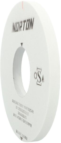 A Norton 38A típusú köszörűkorongokat precíziós köszörülésre használhatja sík-, palást-, valamint szerszám- és marószerszám-köszörűkön. Fehér Elektrokorund Nemes (99,8%-os tisztaságú) alumínium-oxid. A legridegebben és leghűvösebben vágó szemcsék, ezt a csiszolóanyagot minden szabványos típusú köszörűkorongban használják. Ideális anyag kemény acélok, valamint égésre érzékeny acélok és ötvözetek köszörüléséhez. Általában gyorsacélok és öntöttvas szerszámok, valamint vágószerszám-pengék élezésére használják 58 HRC-ig.   Termék információk: Gyártói cikkszám: 66243516008Alakjel: 01Méret: Ø350x25x127 mmSpecifikáció: Szemcse típus/Méret/Keménység/Kötés : 38 A46 L VV1Max. vágási sebesség: 45 m/sCsomagolási egység: 4 db