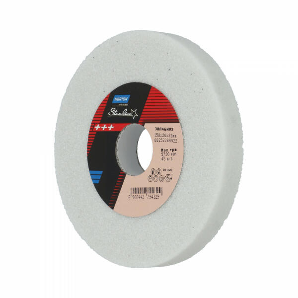 A Norton Starline 38A jelű asztali és állványos köszörűkhöz való köszörűkorongok a leggyakrabban használt méretekben, csiszolóanyag-típusokban és szemcsézetekben kaphatók. Magas minőségű fehér nemeskorund aluminium-oxid szemcse, akár 99,8%-os tisztasággal és prémium kerámia kötéssel. Maximalizált vágóképesség és alacsony hőfejlődési ráta a köszörülés alatt, edzett, ötvözött anyagokhoz és gyorsacélokhoz. minden keménységi fokozatnál használható. Szerszámok élezése, gyorsacélok (HSS, SK, SW), szerszámacélok, edzett acél (NC) élezése. Alkalmas magas hőmérsékletre érzékeny anyagokkal való munkavégzésre alacsony és közepes nyomáson palást- sík- és furatköszörülésre 50 HRC-ig.   Termék információk: Gyártói cikkszám: 66253289922Alakjel: 01Méret: Ø150x20x32 mmSpecifikáció: Szemcse típus/Méret/Keménység/Kötés : 38A 46 N VSMax. vágási sebesség: 45 m/sCsomagolási egység: 2 db/csomag video type="youtube" width="480" height="270" autoplay="0"https://www. youtube. com/watch?v=ztyW4zS9-PA&t/video