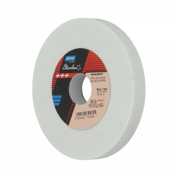 A Norton Starline 38A jelű asztali és állványos köszörűkhöz való köszörűkorongok a leggyakrabban használt méretekben, csiszolóanyag-típusokban és szemcsézetekben kaphatók. Magas minőségű fehér nemeskorund aluminium-oxid szemcse, akár 99,8%-os tisztasággal és prémium kerámia kötéssel. Maximalizált vágóképesség és alacsony hőfejlődési ráta a köszörülés alatt, edzett, ötvözött anyagokhoz és gyorsacélokhoz. minden keménységi fokozatnál használható. Szerszámok élezése, gyorsacélok (HSS, SK, SW), szerszámacélok, edzett acél (NC) élezése. Alkalmas magas hőmérsékletre érzékeny anyagokkal való munkavégzésre alacsony és közepes nyomáson palást- sík- és furatköszörülésre 50 HRC-ig.   Termék információk: Gyártói cikkszám: 66253338090Alakjel: 01Méret: Ø150x20x32 mmSpecifikáció: Szemcse típus/Méret/Keménység/Kötés : 38A 60 N VSMax. vágási sebesség: 45 m/sCsomagolási egység: 2 db/csomag video type="youtube" width="480" height="270" autoplay="0"https://www. youtube. com/watch?v=ztyW4zS9-PA&t/video