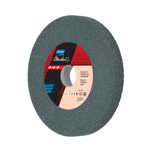 A Norton Starline 39C jelű asztali és állványos köszörűkhöz való korongok a leggyakrabban használt méretekben, csiszolóanyag-típusokban és szemcsézetekben kaphatók. Éles nagytisztaságú sziliciumkarbid (Crystolon) szemcséből készül. Ez a legtörékenyebb csiszolóanyag. Preciziós tervezésű szemcseméretek a megfelelő kötés keménységgel párosítva. Maximalizált vágóképesség minden nem vas tartalmú anyaghoz, alkalmas színesfémek, öntöttvas, alumínium, sárgaréz, bronz, könnyűfémek, réz, titán, vídia és keményfém szerszámok, valamint üveg és műanyagok megmunkálására. Ideális nagy pontosságú köszörülési és élezési műveletekhez.   Termék információk: Gyártói cikkszám: 66253338044Alakjel: 01Méret: Ø180x20x31,75 mmSpecifikáció: Szemcse típus/Méret/Keménység/Kötés : 39C 60 K VSMax. vágási sebesség: 45 m/sCsomagolási egység: 2 db/csomag video type="youtube" width="480" height="270" autoplay="0"https://www. youtube. com/watch?v=ztyW4zS9-PA&t/video