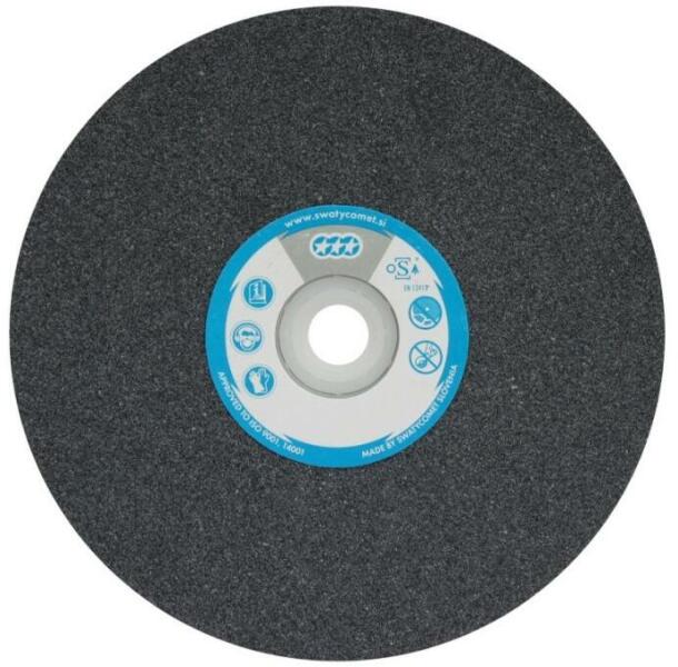 Szilícium-karbid szemcsés köszörűkorong Kötőanyag: kerámia öntöttvas, nem vas fémek (például keményfémek), műanyagok, kerámia és üveg megmunkálására Alak: F1, egyenes Megengedett legnagyobb vágósebesség: 40 m/s A sérült, repedt köszörűkorong használata tilos! Védőfelszerelések használata kötelező! ...